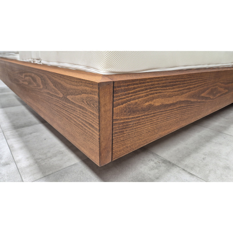 Moderní masivní postel s výrazným čelem a čistými liniemi v kubistickém stylu s hranami. Díky robustní konstrukci a silnému rámu působí pevně a stabilně, zároveň si zachovává elegantní, nadčasový vzhled.