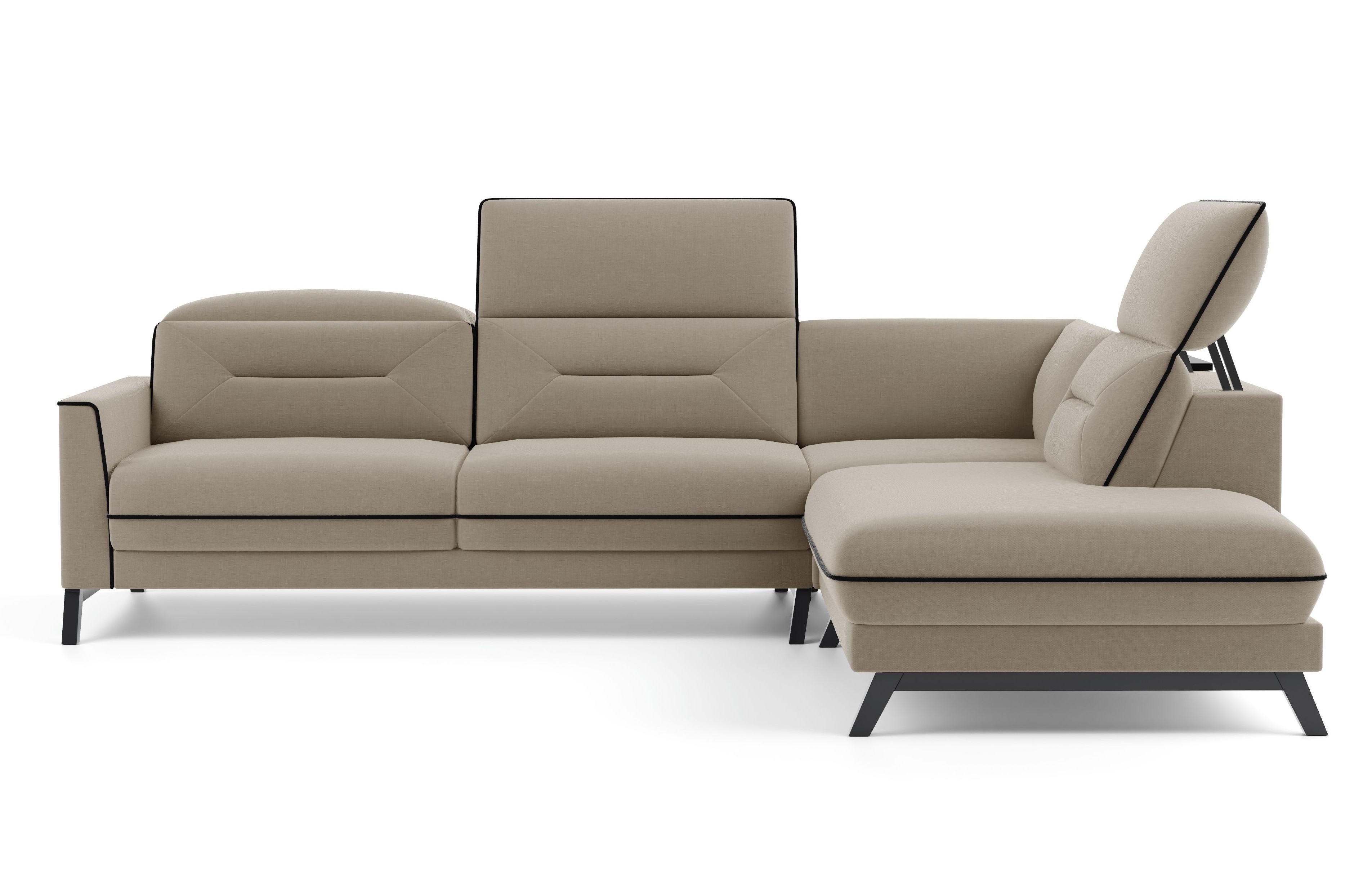 Vybrat si můžete z široké nabídky látek (např. Aquaclean, Magic home) nebo přírodní kůže. Nožičky jsou dostupné v několika variantách – v bukovém nebo dubovém masivu v různých odstínech, případně v moderním kovovém provedení. Díky tomu snadno vytvoříte sedačku přesně podle svého stylu.