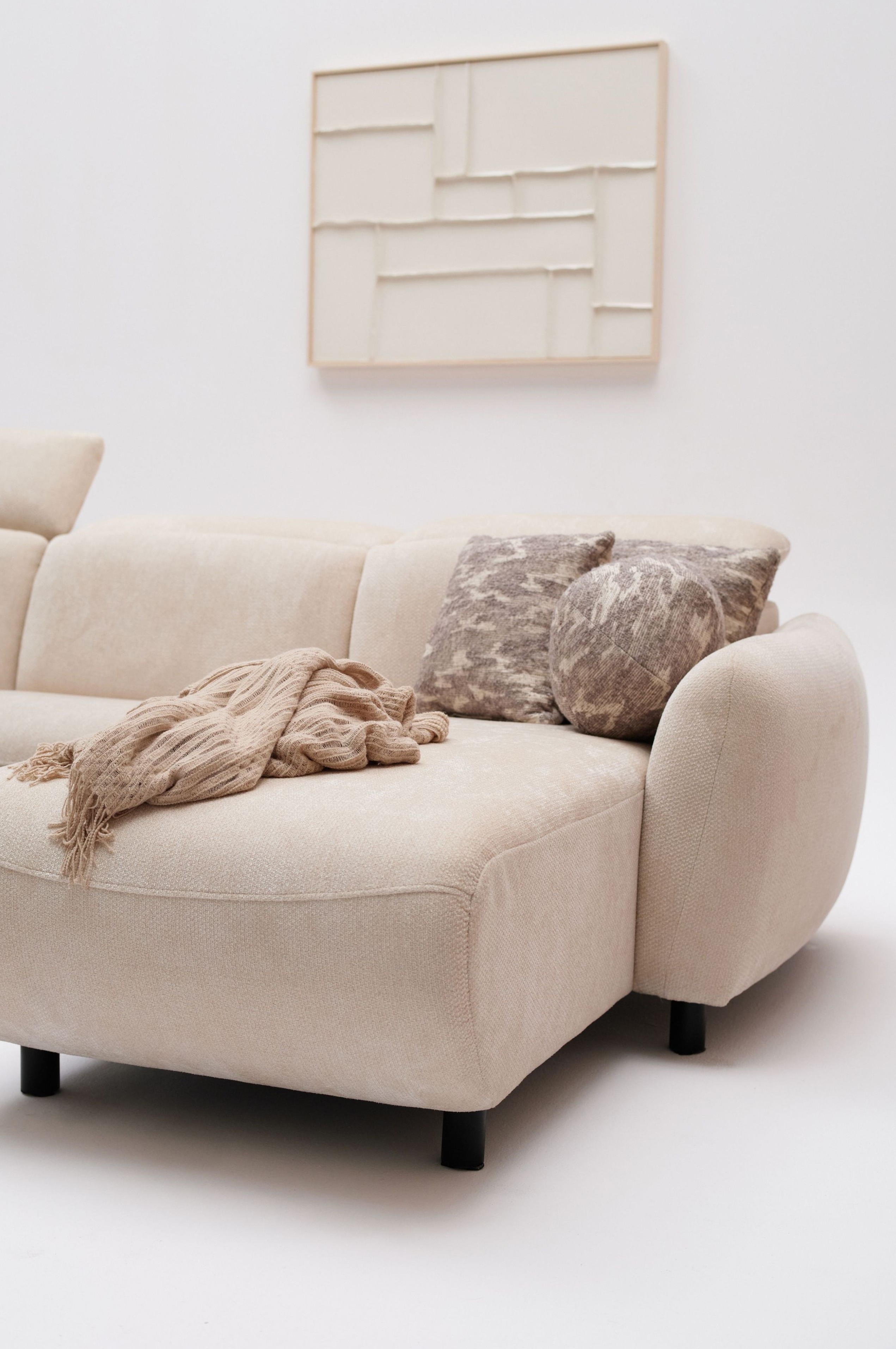Pohovka je doplněna polohovacími opěrkami hlavy, které zvyšují komfort při sezení i odpočinku. U elektrické části jsou opěrky ovládány elektricky, takže si snadno nastavíte ideální polohu bez námahy. U pevných dílů jsou opěrky ve stejném designu a ovládají se manuálně.